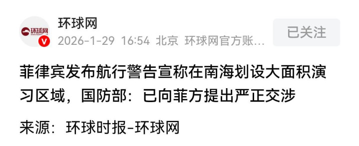 29号当天,在我国国防单位的例行记者会上我们的发言人就回答了菲律宾宣告的这次70天的南海军事演习以及划定大面积演习区域直接覆盖了黄岩岛这件事情。